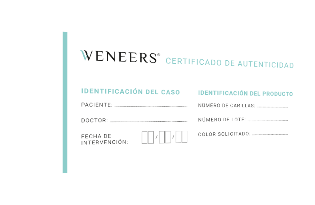 Las carillas Weneers están diseñadas, fabricadas y envasadas conforme a las normas europeas e internacionales.